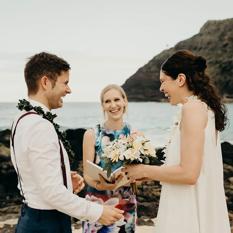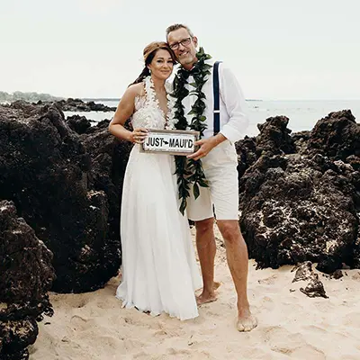 “Der Tag war perfekt und wir hätten es uns unsere Hochzeit auf Maui nicht schöner nicht vorstellen können! Alle Deine Tipps waren goldrichtig. Die Traurede war sehr schön geschrieben und Du hast sie toll gesprochen! “